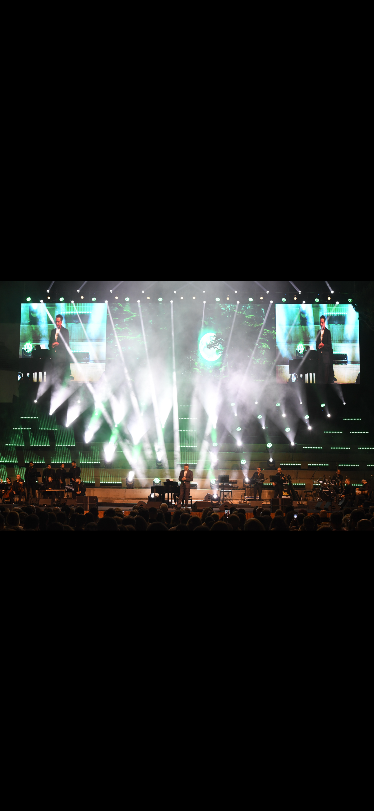 ليتوجه الى الفنان خوري قائلاً:” شُكراً مروان خوري، وشكراً لحضورِكم وَدَعْمِكُم… وهلمّوا نُصْغِ إلى أَعْذَبِ اللّحْنِ والكلام، وَلْنَمْنَح أرواحَنا لحظاتٍ من السّكينَةِ والمُتعَةِ والجمال”.