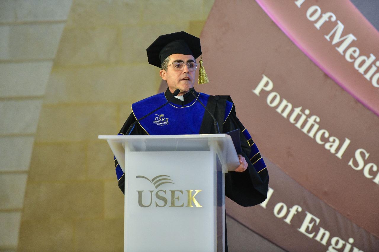 وأشار إلى التحوّل الذي شهده في الخريجين، “فقد أصبحوا اليوم بالغين، مسؤولين عن حياتهم وكرامتهم، وينطلقون نحو سوق العمل مسلّحين بتعليم عالي الجودة، ومحصّنين بالقيم التي نشّأتهم عليها الجامعة، ونحن واثقون أنهم سيكونون على قدر المسؤولية”.