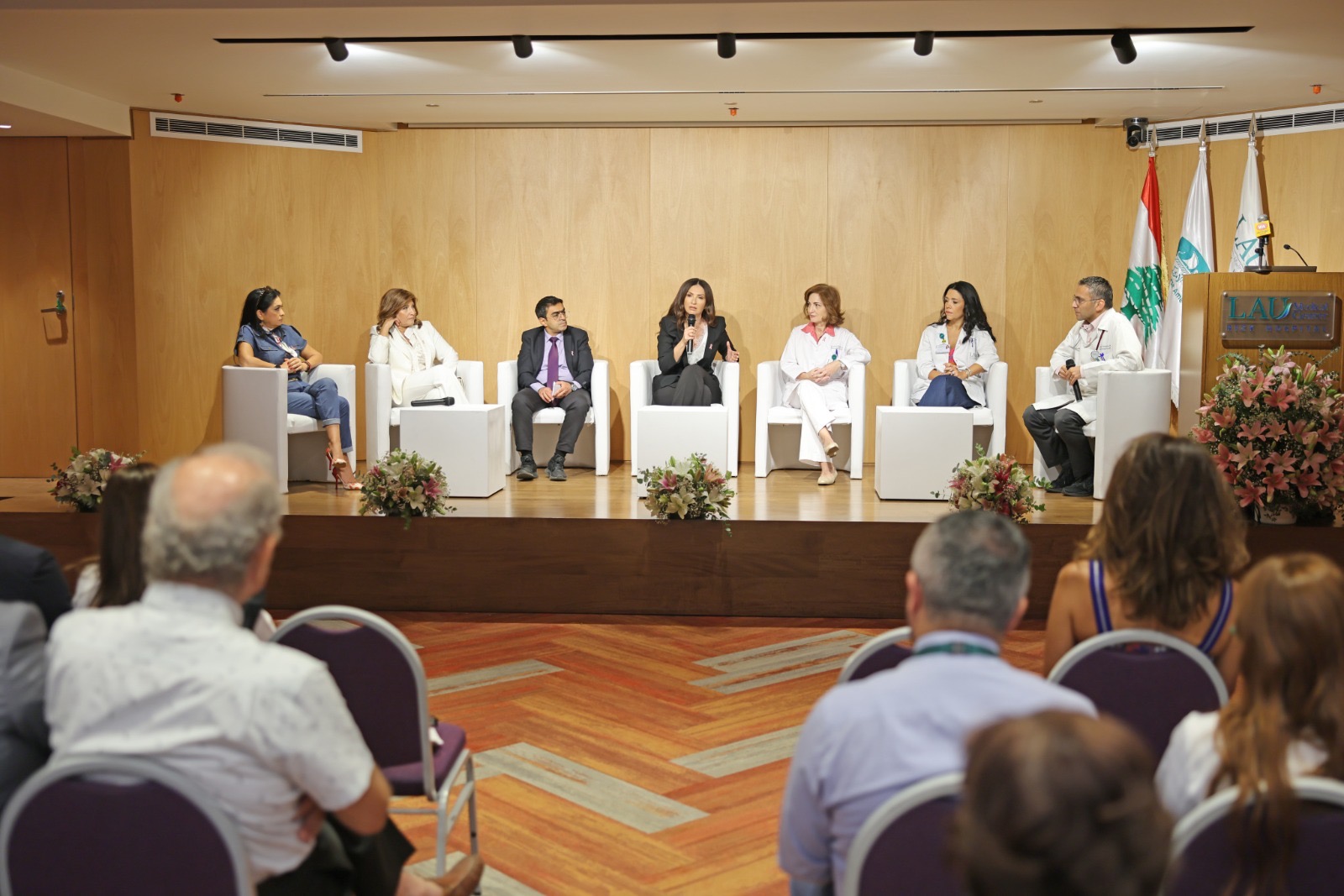ونُظمّت بعدها حلقة نقاش ادارها رئيس قسم امراض الدم والاورام الدكتور هادي غانم، وشارك فيها رئيسة قسم تصوير الثدي الدكتورة تمينا رزق، مديرة برنامج الزمالة في امراض الدم والاورام الدكتورة كرستينا خاطر، الاستاذ المساعد في الطب النفسي الدكتور طوني صوما، الاعلامية ريما كركي وامرأتان تغلّبتا على المرض: كارلا عبدو و ناديا الخوري. وتمحور النقاش حول الجوانب الطبية والنفسية والاجتماعية التي تواجه مرضى سرطان الثدي، مؤكدين ان الشفاء يتجاوز حدود العلاج الطبي ليشمل الدعم النفسي والمعني واهمية الحوار والوعي الذاتي.
